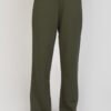 Plačios tiesaus modelio kelnės su kišenėmis. Juosmuo su guma. Audinys vidutinio storumo, kilpinis (trisiūlis) trikotažas, tamprus.
