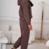 Stilingas šiltas sportinio stiliaus kostiumėlis. Džemperis platesnio modelio, su didele kišene ir kapišonu. Tiesaus modelio kelnės su kišenėmis. Liemuo bei kelnių galai su guma. Audinys storesnis, šiltas su pūkeliu, tamprus.