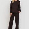 Stilingas laisvalaikio kostiumėlis. Palaidinė ilgomis rankovėmis, plataus modelio. Plačios tiesaus modelio kelnės su kišenėmis. Juosmuo su guma. Audinys vidutinio storumo, jaukus ir tamprus.