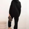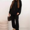 Šiltas laisvalaikio kostiumėlis. Džemperis laisvesnio ir ilgo modelio su kišene bei kapišonu. Siaurėjančios kelnės su kišenėmis, liemuo guma. Audinys storesnis, su pūkeliu, tamprus.