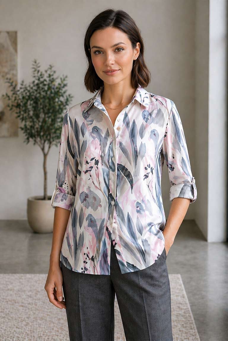 Stilingi klasikinio stiliaus marškiniai su 3/4 rankovėmis. Plonesnis, lengvai krentantis audinys – mažai tamprus, neglamžus ir malonus dėvėti.