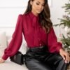 Klasikinio stiliaus puošnūs marškiniai lengvai pūstomis rankovėmis. Pagal poreikį rišasi stilingas kaspinėlis Audinys plonesnis, netamprus.