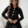 Elegantiški klasikinio stiliaus marškiniai. Kaspinėliai (sagės) nusiima. Audinys plonesnis, lengvai krentantis, mažai tamprus ir neglamžus