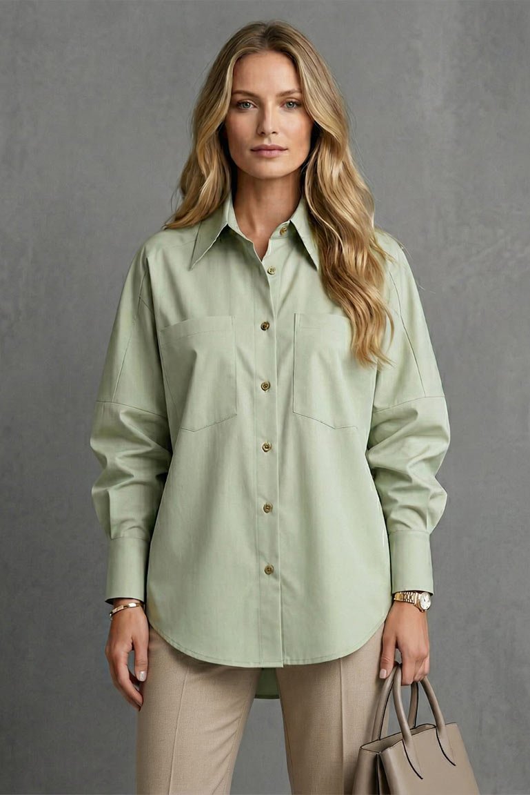 Stilingi klasikinio stiliaus marškiniai. Plataus laisvo bei ilgesnio modelio. Rankovių nuleista pečių linija. Audinys vidutinio storumo, mažai tamprus ir neglamžus