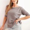 Stilingas švelnus megztinis 2/4 rankovėmis. Audinys su vilna, vidutinio storumo, tamprus ir jaukus