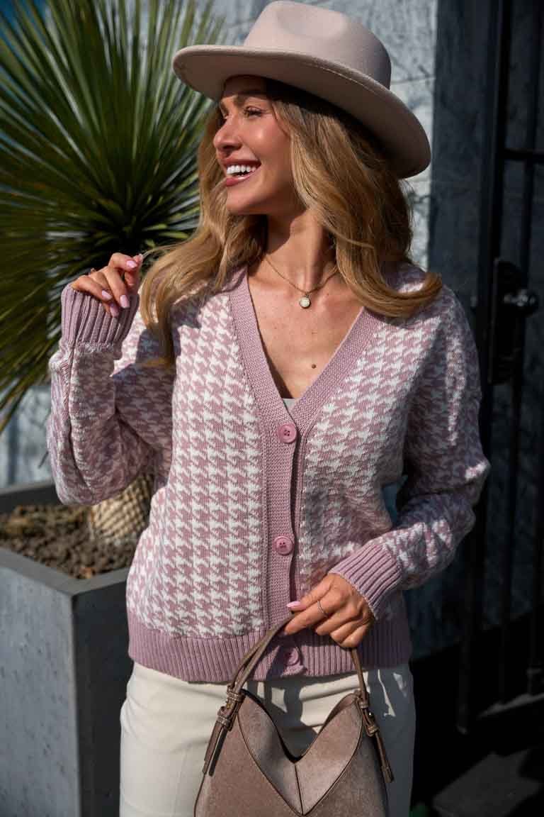 Stilingas jaukus ir minkštas laisvalaikio megztinis ilgomis rankovėmis, segamas sagomis. Mezginys vidutinio storumo, jaukus ir tamprus.