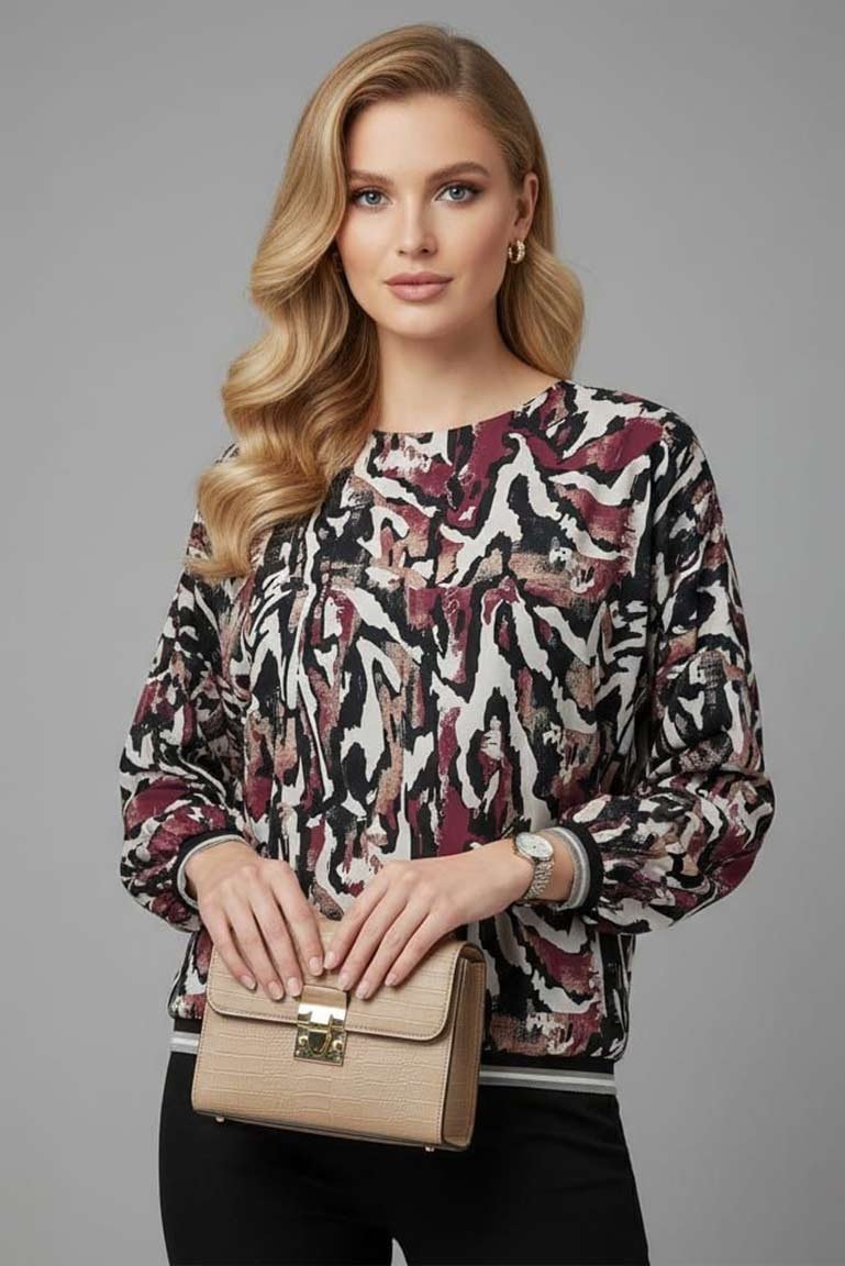 Stilinga klasikinė palaidinė 3/4 rankovėmis, modelis laisvesnis, juosmuo su guma. Nugaroje stilinga iškirptė. Audinys plonas, jaukus ir trupučiuką tamprus