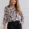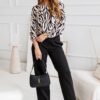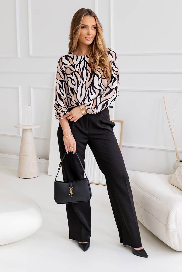 Klasikinio stiliaus palaidinė ilgomis rankovėmis. Juosmuo ir rankogaliai su gumele. Audinys plonesnis, jaukus, lengvai tamprus